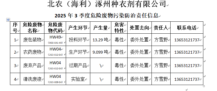 首页 > 新闻资讯 > 公司新闻 > 2025年3季度危险废物污染防治责任信息